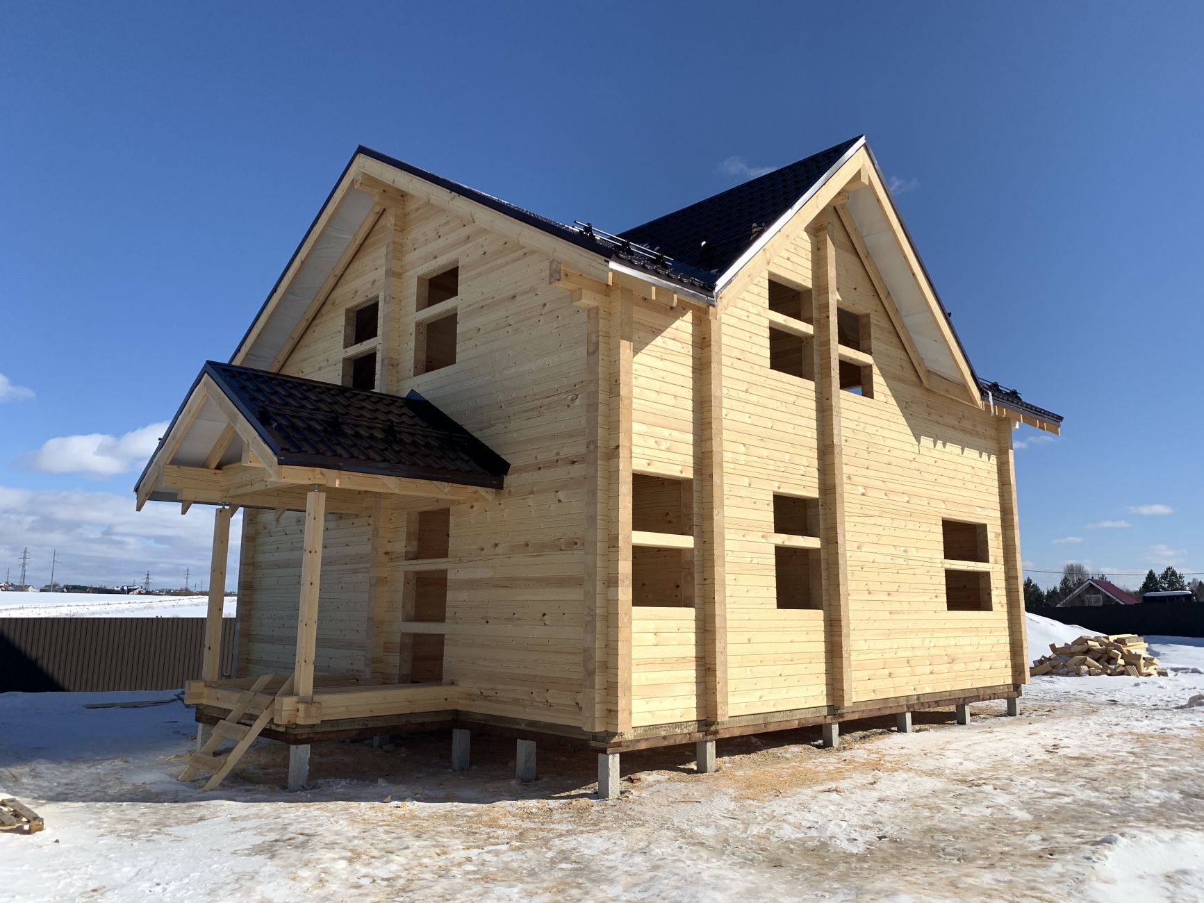 На основании наших эскизов компания разработала индивидуальный проект и построила дом в два этажа из профилированного бруса камерной сушки сечением 190мм х190мм.