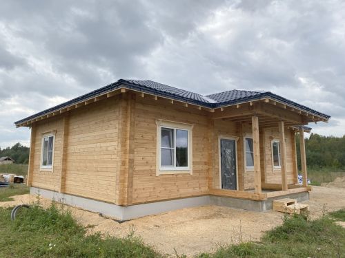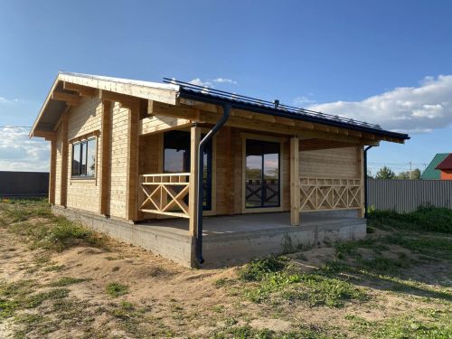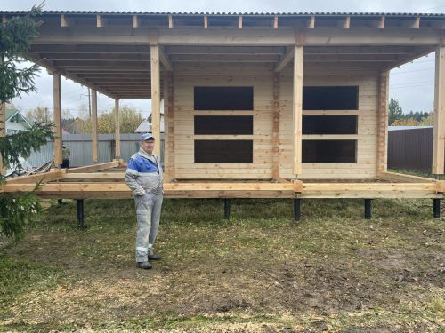 В Московской области, Наро-фоминский городской округ, в деревне Турейка, завершили сборку небольшого летнего домика из профилированного бруса.