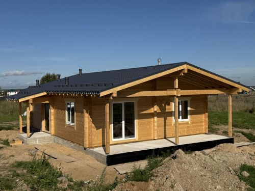 В деревне Филяевская Вельского района мы завершили сборку одноэтажного дома 8×11,5 м по проекту «Осенний».