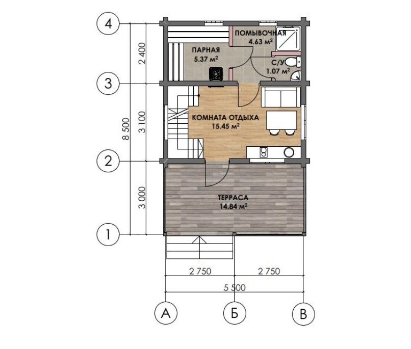 В основе — проект «Солнечная» из нашего каталога. Вместе с Владимиром и его отцом, Виктором Аркадьевичем, адаптировали его под задачи семьи: