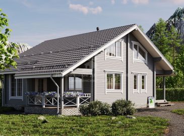 «Гренландия» – это просторный дом с мансардным этажом, который подойдёт для круглогодичного проживания семьи с детьми. Гостей встречает крыльцо (7,94 м²). Из нежилых помещений на 1-м этаже находятся тамбур (5,3 м²), холл (11,35 м²) и ванная (8,3 м²). Из жилых – спальня (10,88 м²) и вместительная кухня-гостиная (50,44 м²) с прямоугольным эркером. Этаж венчает крытая терраса (15,03 м²), расположенная на противоположной стороне от крыльца.