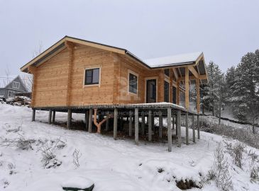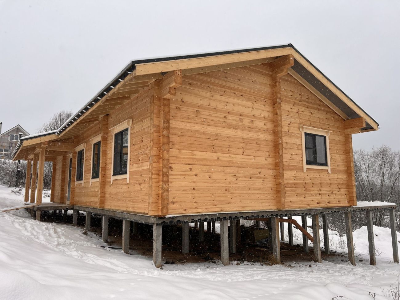 - Стоимость дома в комплектации “теплый контур”, как на фото (фундамент- ж/б сваи + плита-заказчик установил самостоятельно, стены из проф.бруса толщиной 190 мм, кровля с гибкой черепицей, утепление потолков по балкам и скатам крыши 250мм, окна Rehau Delight 70мм) - 7 млн рублей.