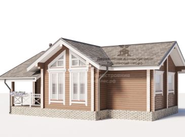 «Парус» – это комфортный одноэтажный дом, выполненный из профилированного бруса камерной сушки. Его общая площадь – 60 м². Гостей встречает небольшая крытая терраса (7,47 м²), которую при желании можно остеклить, переоборудовав под прихожую.