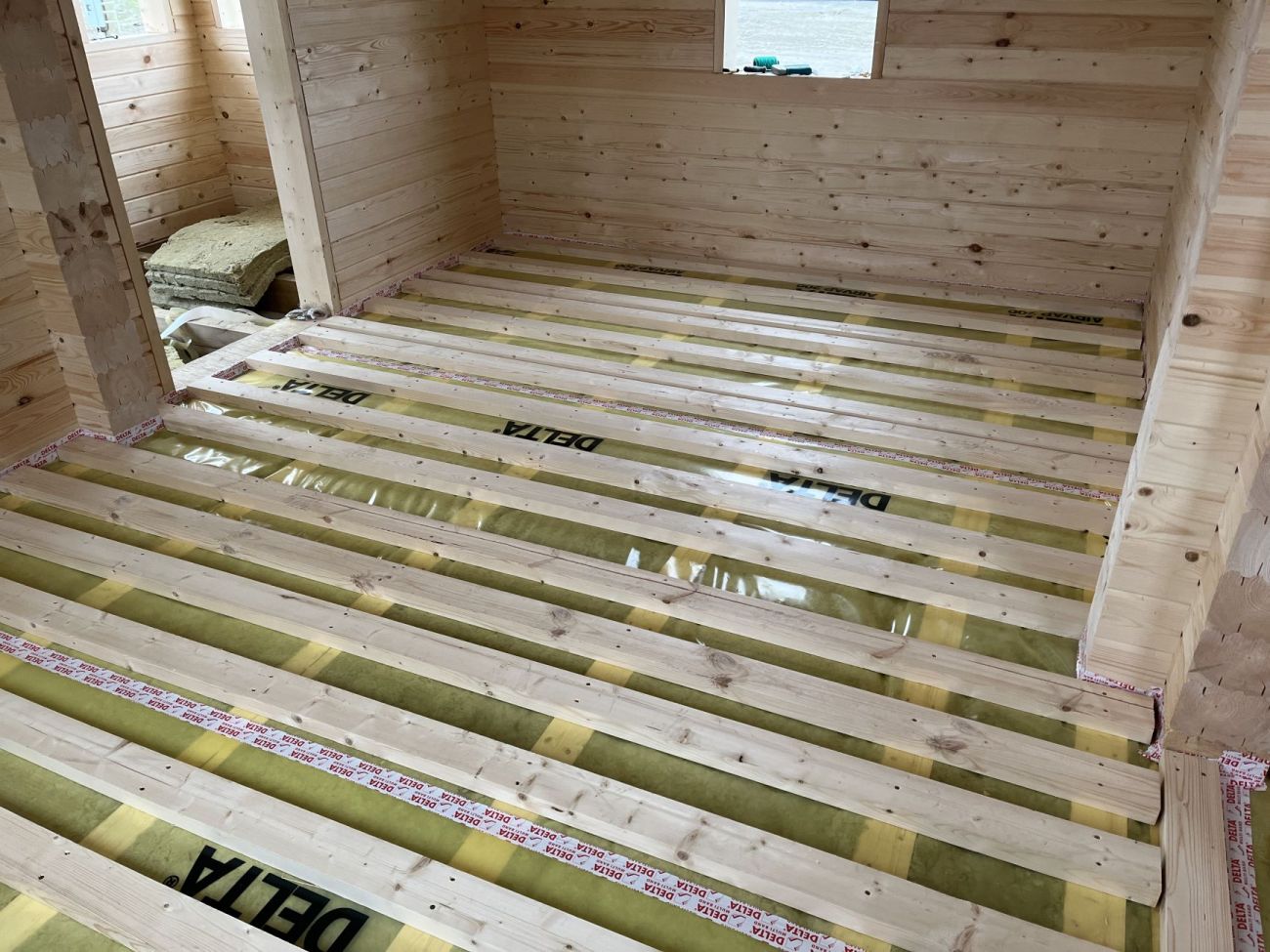 Все материалы, включая окна, доставили из Вологды — аккуратно и вовремя. Опытная бригада Александра Дьякова собрала дом за 15 дней. Заказчик Сергей на протяжении стройки был на месте и участвовал в каждом этапе. По его просьбе в цоколе сделали сплошной настил для защиты от куниц и установили привезённую им металлическую дверь.