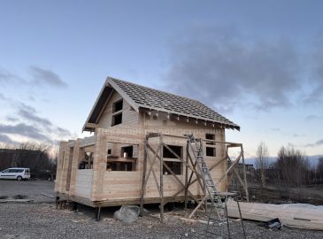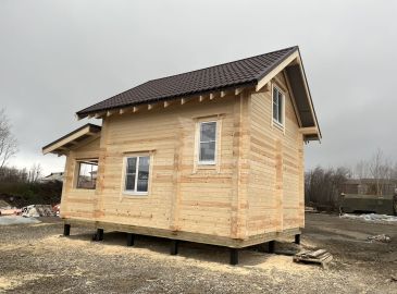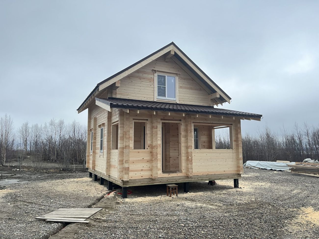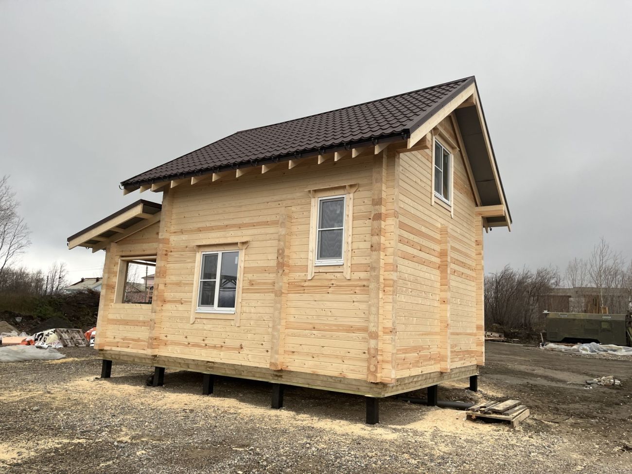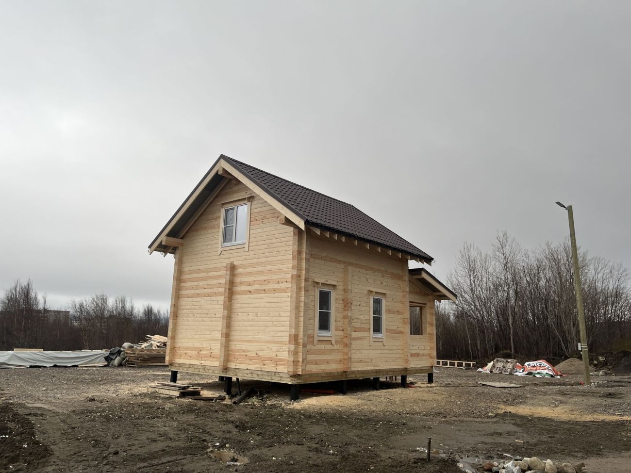 Завершили сборку дома 5,5×7,5 м в городе Мончегорск по программе арктической ипотеки 2% от Сбера. Дом построен в комплектации «тёплый контур» — с утеплением перекрытий, установленными окнами и крышей из металлочерепицы.