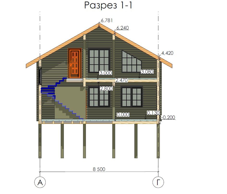 — Дом установлен на железобетонных сваях с обвязкой из бруса 200х200 мм