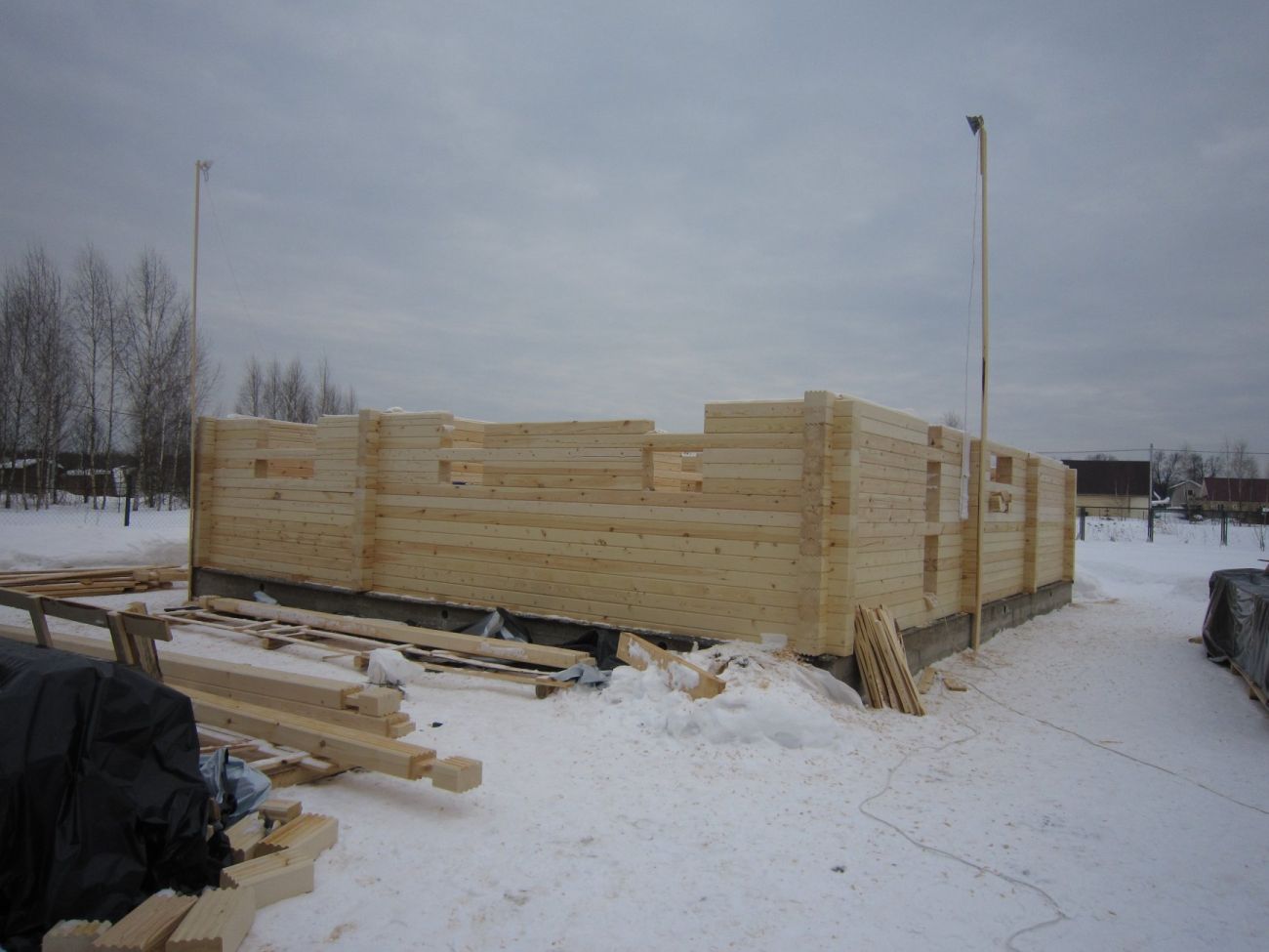 В конце зимы - начале весны 2018 года привезли домокомплект на участок и приступили к сборке. Сборка сруба под металлочерепицу заняла 17 дней.