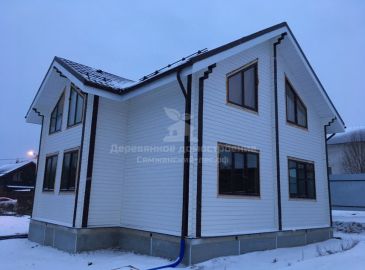 В феврале 2018 года наша бригада во главе с Артемом Бешеля установили домокомплект из профилированного бруса камерной сушки под черновую кровлю. Уже летом, после первичной усадки дома, Павел и Мария приступил к отделочным работам: