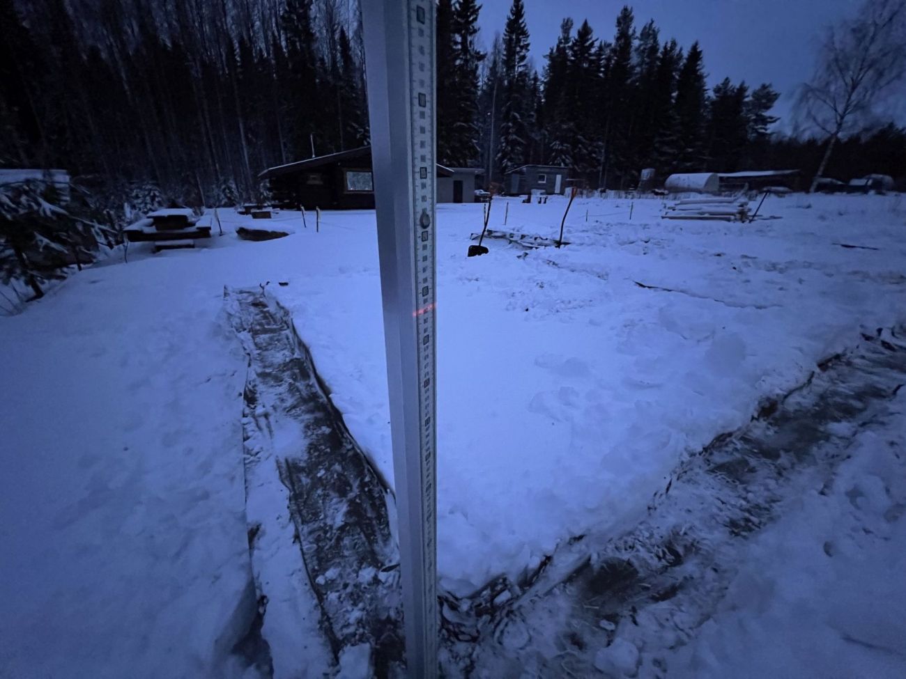 Дорога в Карелию оказалась непростой: мы столкнулись с ураганом, ледяным дождем и снегом. Однако поездка была результативной: перемеряли фундамент, определили границы для разгрузки материалов, нашли место для проживания бригады, договорились с трактористом о расчистке снега.