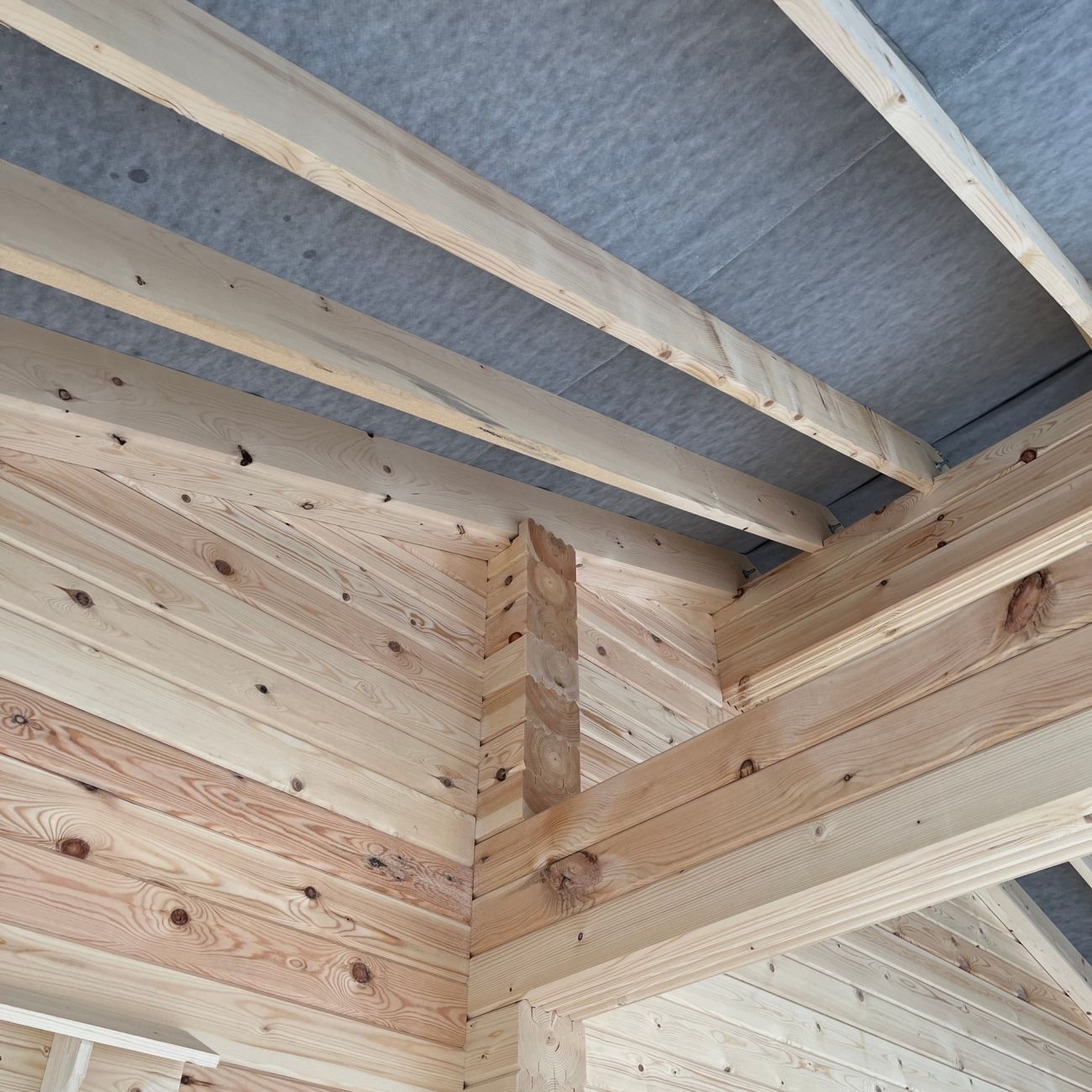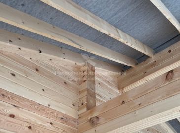 Сборку вела опытная бригада Александра Дьякова. Дом был собран за пару недель, параллельно выполнили утепление потолков по балкам.