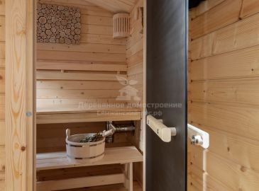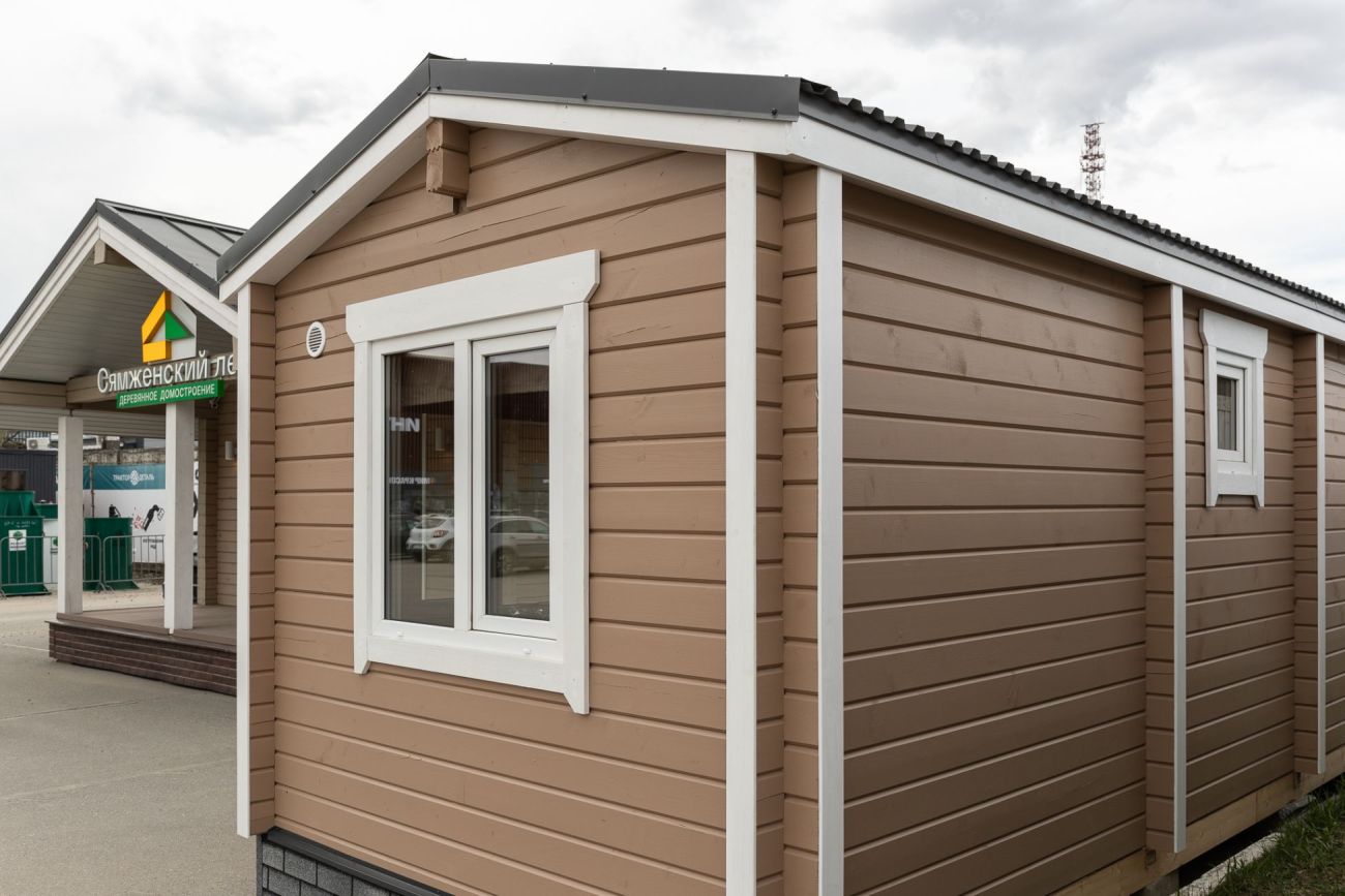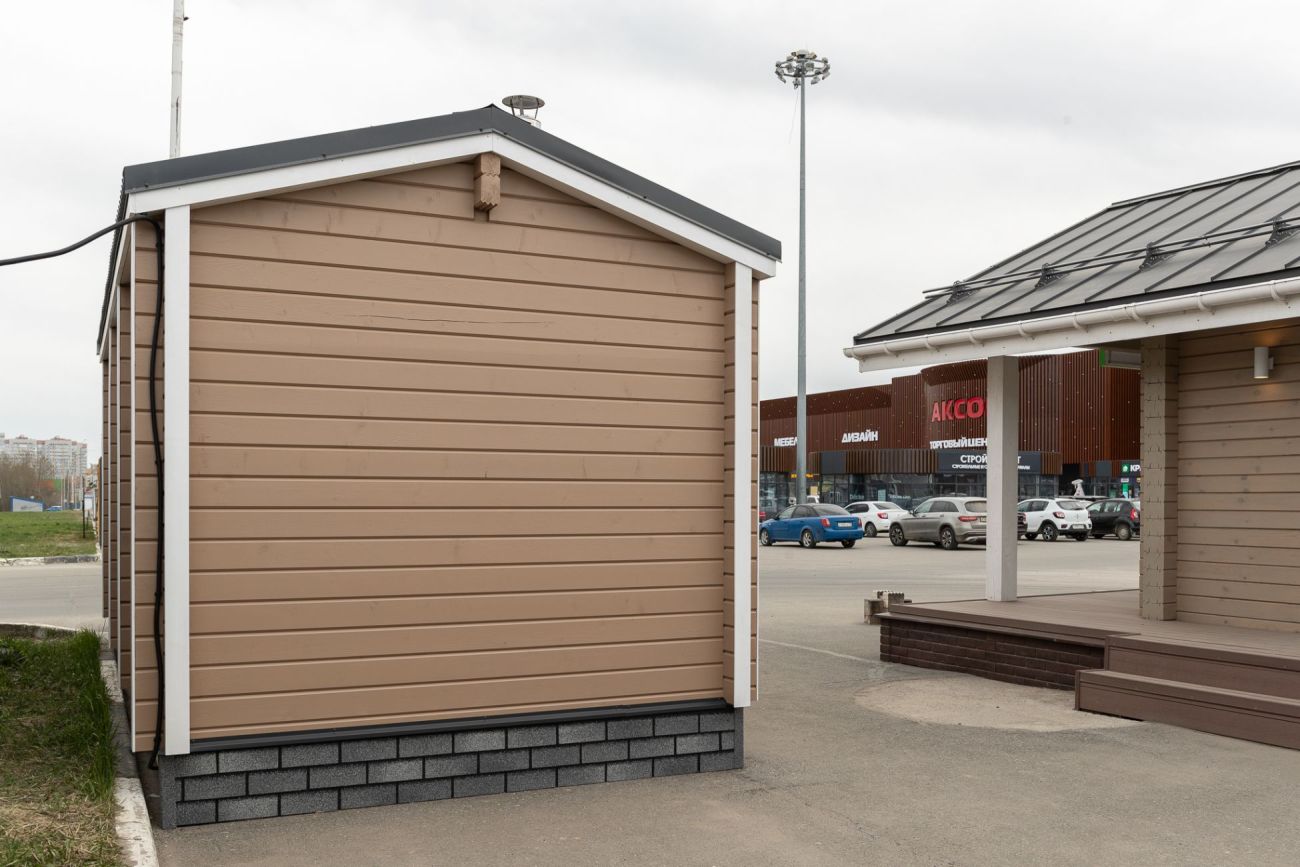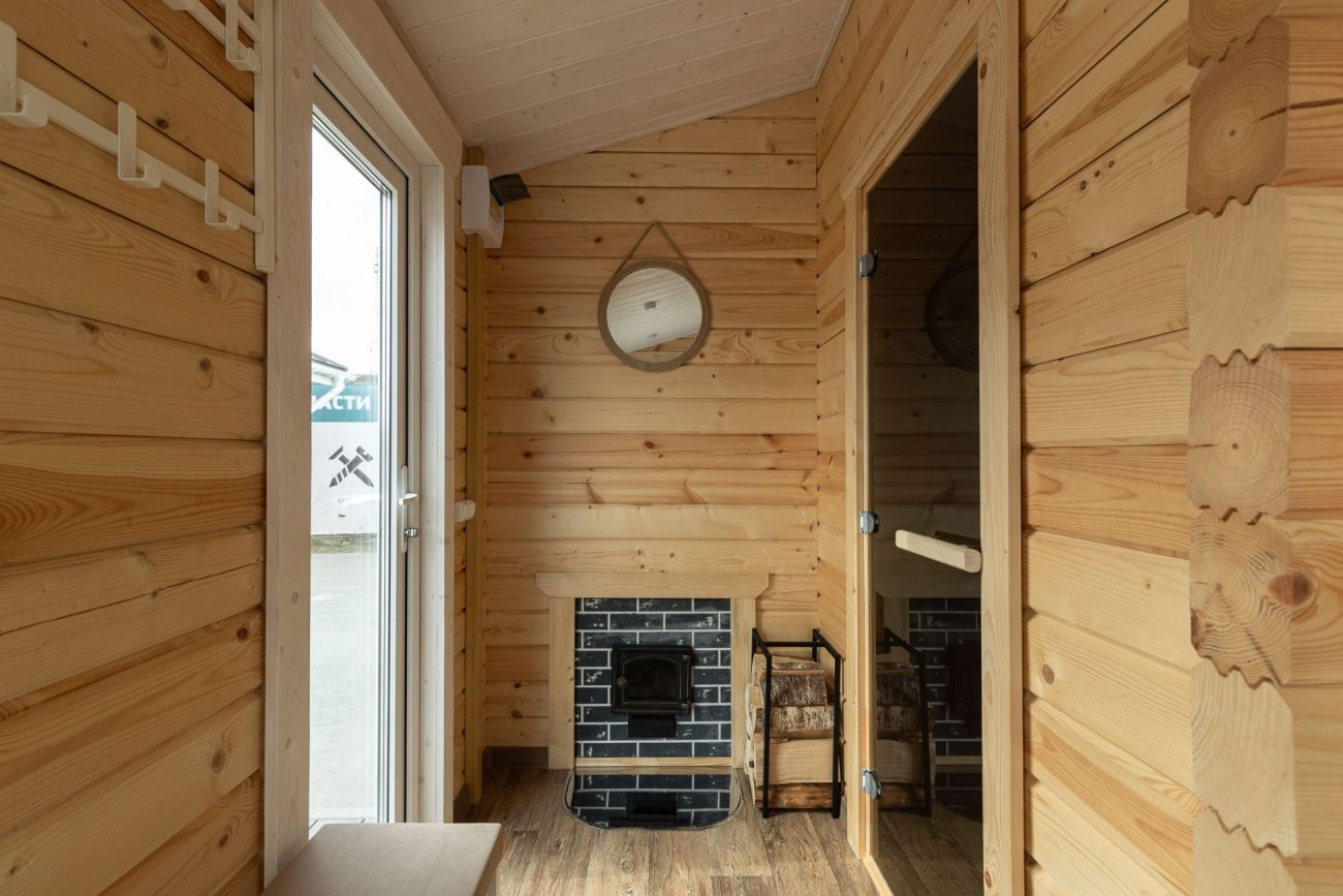 Одну из бань можно посмотреть вживую — она выставлена у ТЦ «Аксон» (Вологда, Окружное шоссе, 18). Можно зайти внутрь, оценить планировку и качество.