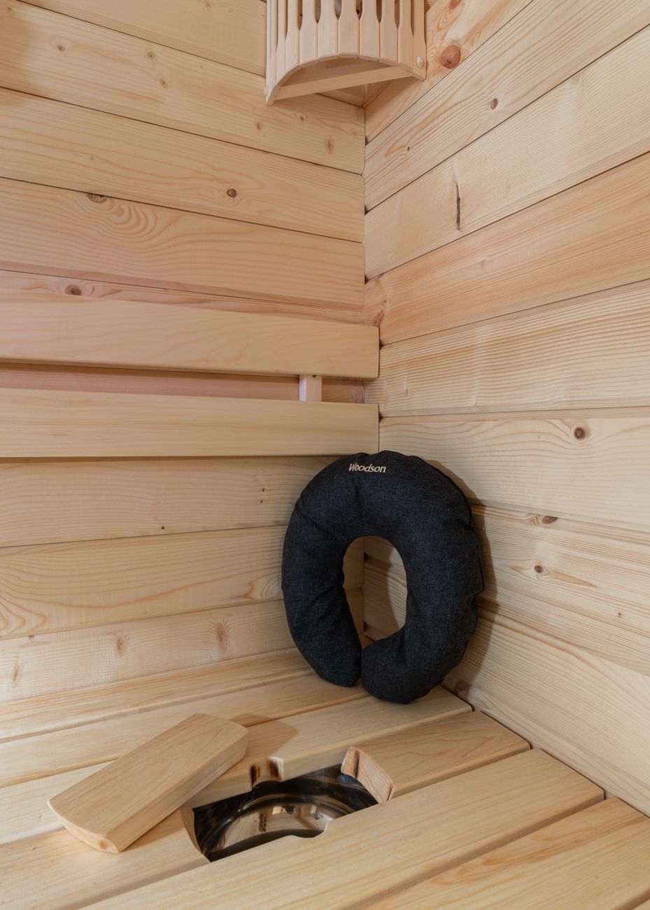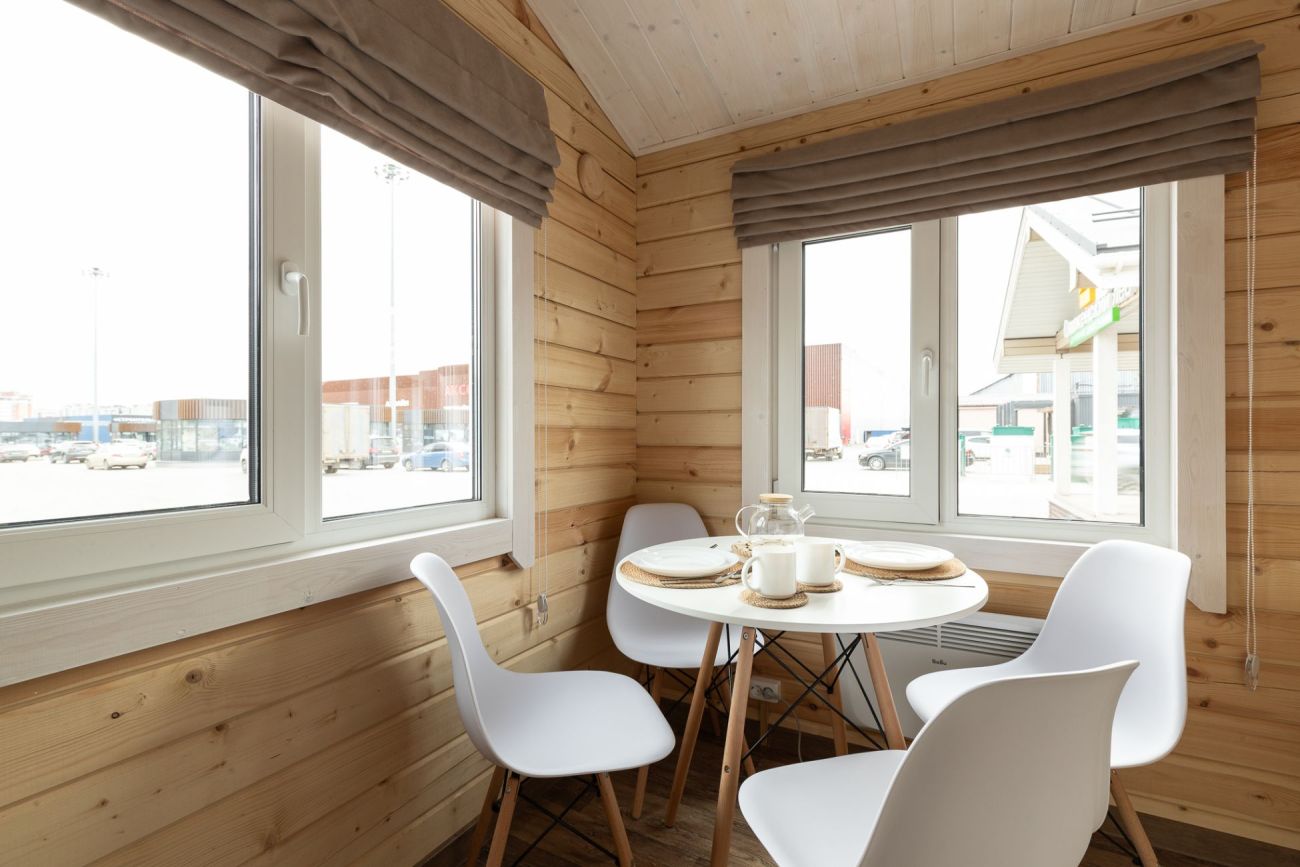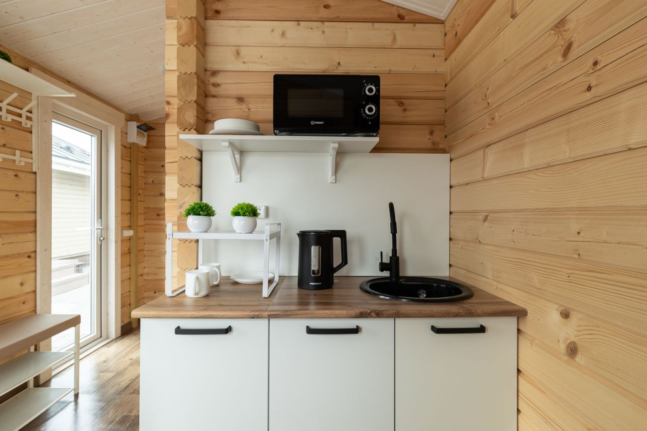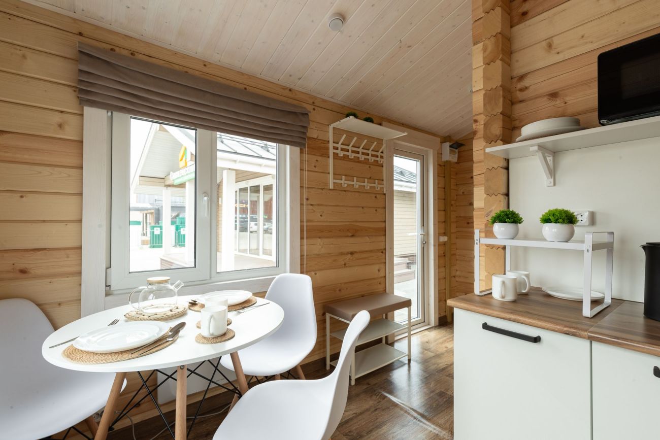 Одну из бань можно посмотреть вживую — она выставлена у ТЦ «Аксон» (Вологда, Окружное шоссе, 18). Можно зайти внутрь, оценить планировку и качество.