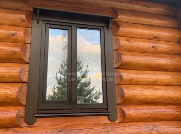 4) Вставили окна и установили наличники, цвет - мореный дуб.
