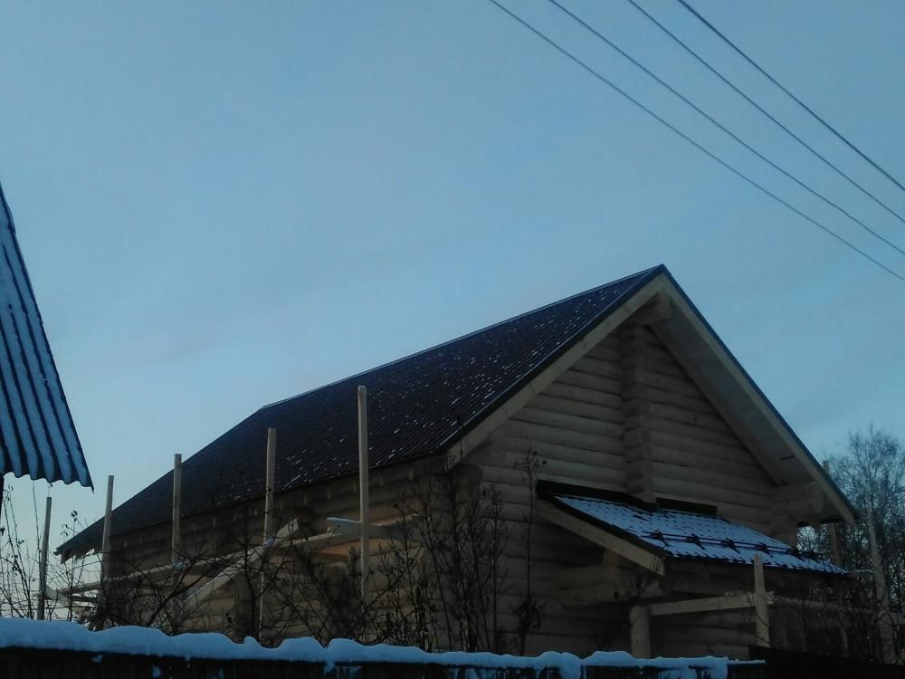 Покрыли крышу металлочерепицей на доме из бревна ручной рубки в СНТ Ветеран-2 Московской области.