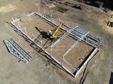 Чтобы производить клееный брус длиной от 9 до 12 метров, потребуется цех размером 18х48 метров. На данный момент мы уже залили ленточный фундамент с буронабивными сваями и начали монтировать металлический каркас.