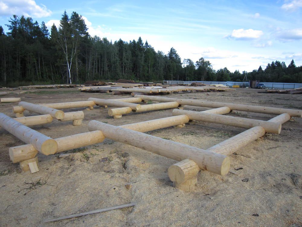 На данный момент уже выставили по уровню и начали рубить 2й колодец дома.