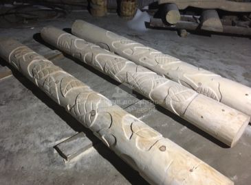 В одном из наших домов, который устанавливается в данный момент во Всеволжском районе Ленинградской области, как раз пригодились такие столбы! Внутри дома было необходимо установить данные контруктивные элементы, так как сверху на них опирается часть стены. Для того, чтобы это выглядело красиво, по эскизу нашего заказчика были изготовлены резные столбы.