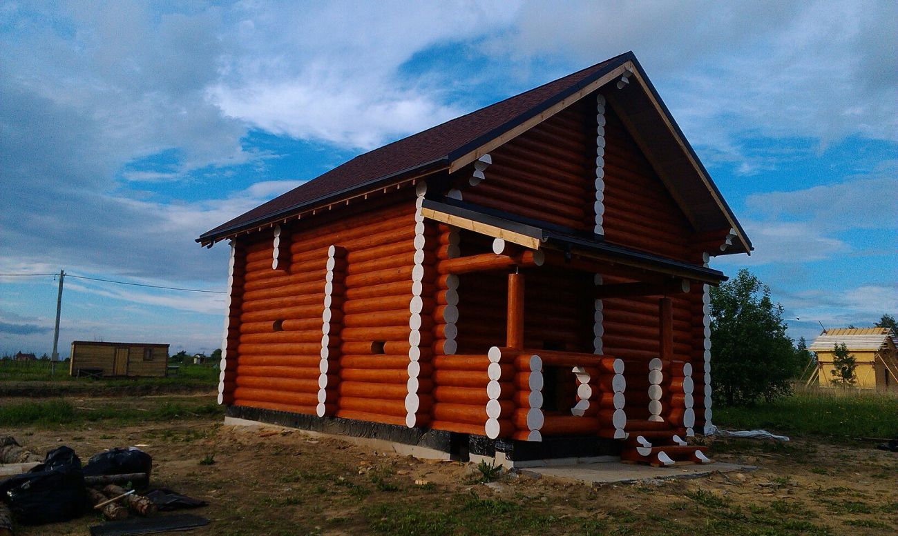 Торцы стен сруба были отшлифованы, сруб был обработан грунтовкой Акватэкс Грунт, наружные стены покрашены в 2 слоя Акватэкс Экстра.Цвет-Груша.