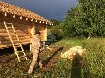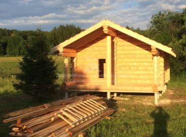 Баню установили в Вологодском районе д. Ульяновка.На участке рядом с фундаментом растет отличная ель, поэтому разгружали и монтировали сруб манипулятором осторожно, чтобы не повредить дерево.Фундамент был выполнен силами Заказчика.Фундамент свайный.Забивные железобетонные сваи отличаются своей практичностью и невысокой стоимостью, а также быстрым сроком монтажа.Данные сваи изготавливаются на бетонном заводе, монтируются с помощью специальной ударной машины.По информации производителей одна такая свая способна выдерживать нагрузку до 5 тонн, поэтому данный фундамент отлично выдержит нагрузку от деревянного сруба.