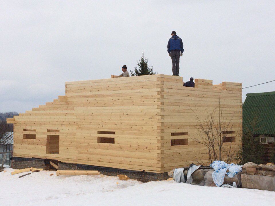 Перед нами стояла задача собрать домокомплект из профилированного бруса камерной сушкии, а также выставить стропила.Все дальнейшие работы заказчик планирует осуществлять своими силами.Фундамент также был построен силами заказчика.