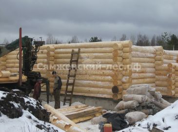 Дом рубили по индивидуальному проекту. Диаметр бревна от 26см. Дом был собран в течение 5 дней, покрытие кровли временное - рубероид, так как крыша сложная, многоскатная. Чистовое покрытие будет монтироваться после усадки сруба. Время усадки сруба займет 12 месяцев.