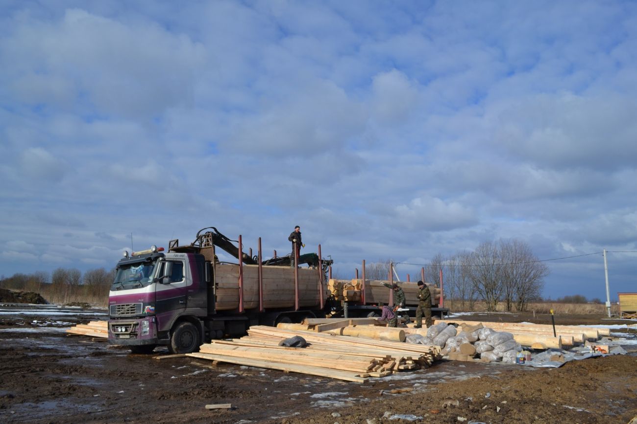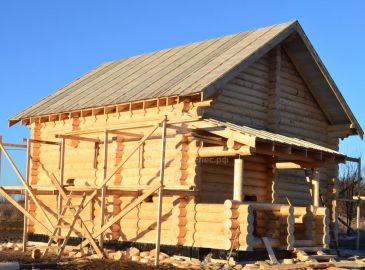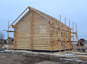Размеры сруба 8х10 метров по центрам.Сруб был срублен в феврале 2016 года,а в марте уже доставлен и установлен.На рубку сруба потребовалось 30 дней.На доставку и сборку сруба "под крышу"-10дней.