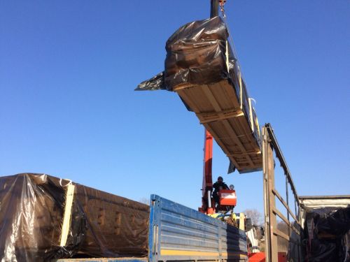 Дом рубили по индивидуальному проекту. Диаметр бревна от 26см. Дом был собран в течение 5 дней, покрытие кровли временное - рубероид, так как крыша сложная, многоскатная. Чистовое покрытие будет монтироваться после усадки сруба.