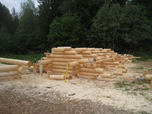 Дом рубится по проекту Ксения из нашего каталога.Средний диаметр бревна от 26см в вершине.На даннй момент идут бревна в диаметре 30-32 см.