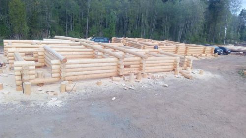 При рубке делается компенсационный пропил сверху бревна, а также отверстия для скрепления бревен шпильками.Во время рубки все пазы и чашы обрабатываеются антисептиком.