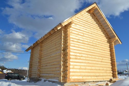 Сруб собран,установлена стропильная система с обрешеткой под металлочерепицу.На данный момент получены размеры крыши.Металлочерепица заказана. На 3 марта планируется доставка материала и покрытие крыши металлочерепицей.