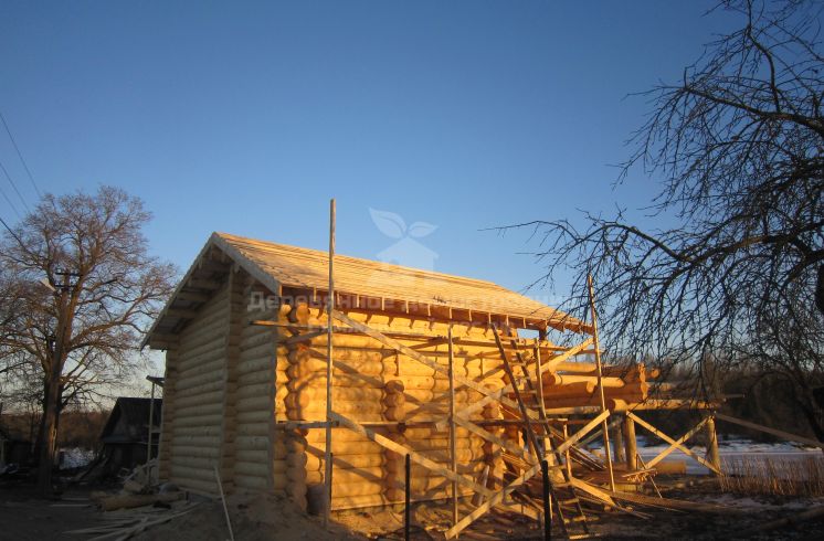 После чего сразу же началась рубка сруба. Ход рубки периодически показывался на сайте фирмы.