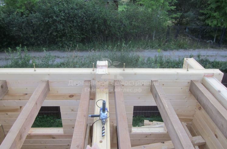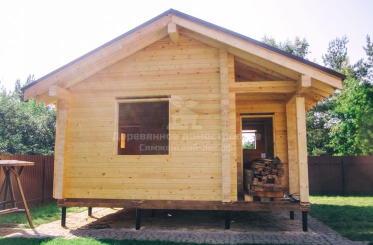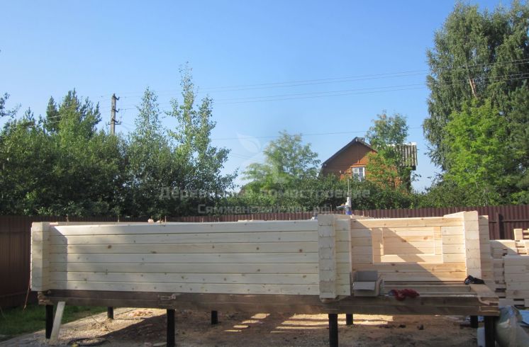 К работе мы приступили в середине августа. Для заказчиков, Сергея и Анны, объект — новая баня — стала уже третьей постройкой на участке, выполненной из профилированного бруса. Дом и беседка у супругов тоже возведены из данного материала.