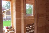 Для нас же баня в посёлке Рахья оказалась... первой. Первой постройкой из профилированного бруса, где вместо привычного профиля «гребёнка» применялся финский профиль. Символично, согласны? В посёлке с финским названием — баня из бруса с финским профилем. Его главное отличие — между венцами прокладывается утеплитель.