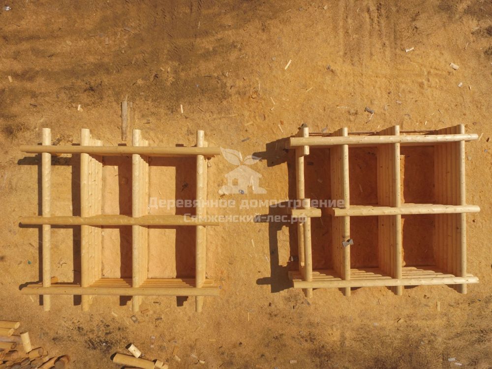 Описание объекта: Возможности заехать камазу на участок не было, поэтому собирали через забор, со свободного участка соседа. С соседом заезд согласовали, в знак благодарности и для складирования бревен выкосили всю траву на его участке. Баня изготовлена по проекту Рина из нашего каталога. Бригада Александра Дьякова за 7 дней изготовила сруб, за 5 дней собрали сруб. На данный момент заказчик привез металлочерепицу и планирует самостоятельный монтаж кровли и отделку сруба.