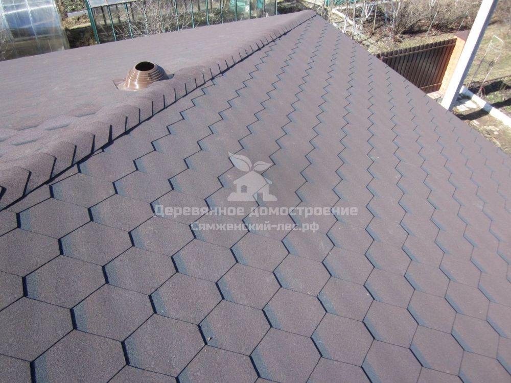 Фундамент- железобетонная плита+ростверк из кирпича под несущими стенами. Под первый венец уложили гидроизоляцию и подкладочную доску из лиственницы, стены собрали на березовые нагеля и пружинный узел "TedWood". Кровлю покрыли мягкой черепицей Шинглас.