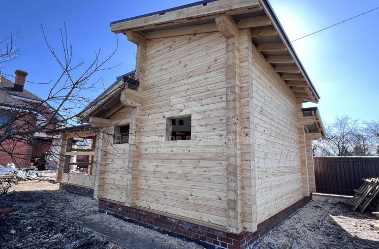 В Вологде завершили сборку бани 6х9 по индивидуальному проекту. Баня совмещена с беседкой, где будет расположен барбекю комплекс. В комнате отдыха потолки сделаны по скатам кровли, а над моечной и парной есть небольшое помещение, где можно разместить спальное место.