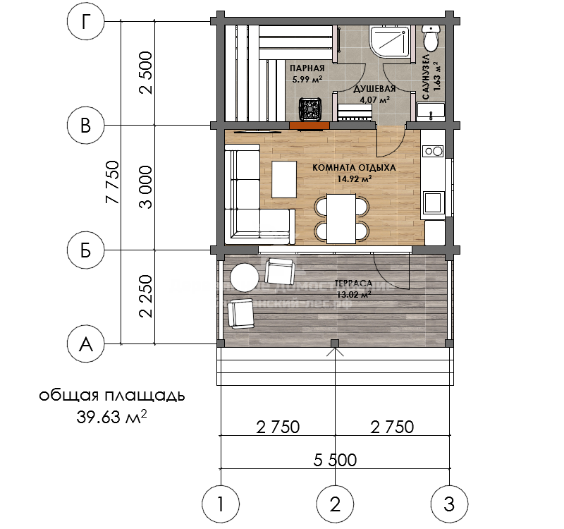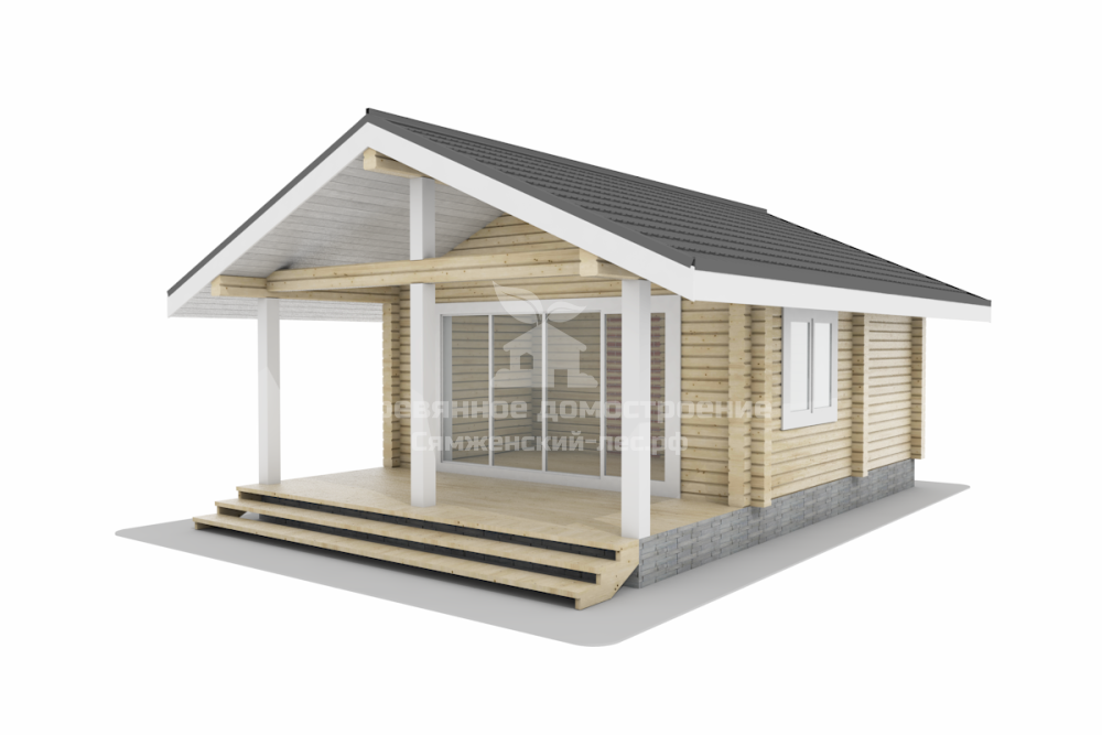 Классическая баня из профилированного бруса по проекту «Лесная» с увеличенными габаритами и доработанной террасой.