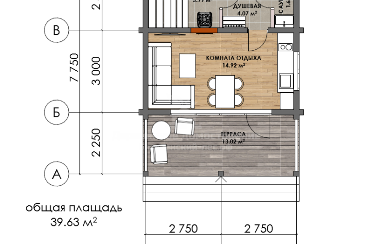 За основу взят проект «Лесная», который является одним из самых востребованных среди заказчиков. В данном случае проект был адаптирован под задачи семьи и особенности участка.