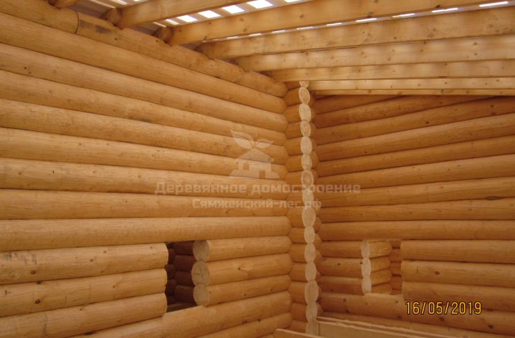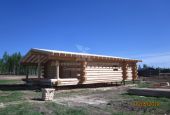 Рубка сруба выполнена в чашу, но с разной длиной зауголков-выступающих бревен на углах сруба. Рубка похожа на "дикий" сруб", но в настоящей "дикой" рубке используются неровные бревна, у которых комли неправильной формы. Мы же используем только отборный, строевой лес, поэтому бревна ровные и сруб смотрится иначе. Изготовлением и установкой сруба занималась бригада Николая Фатиева, доставку и сборку сруба манипулятором выполнил Белоглазов Дмитрий Иванович. На погрузку, доставку и сборку сруба потребовалось 5 дней.