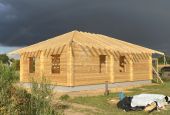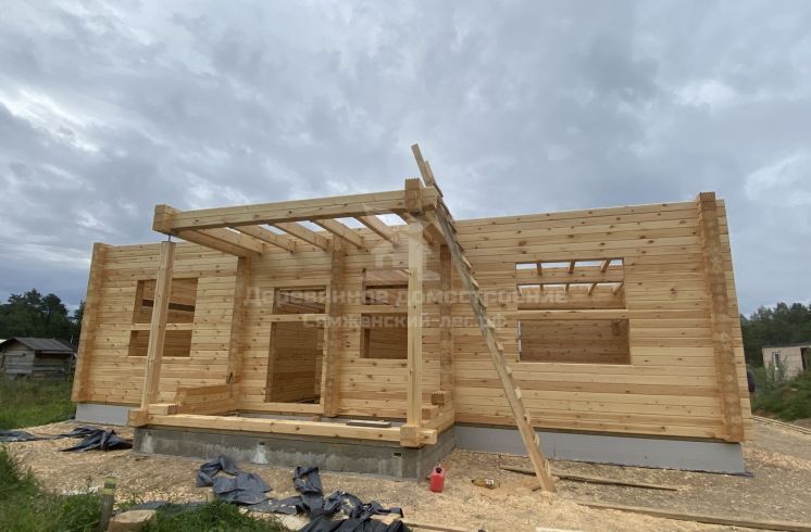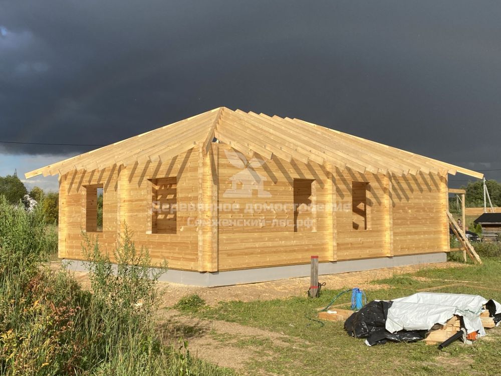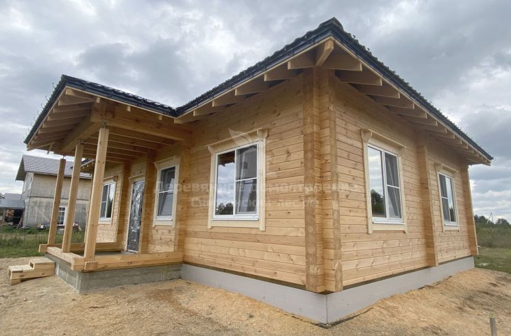 В деревне Филяевская Вельского района мы завершили сборку одноэтажного дома 8×11,5 м по проекту «Осенний».