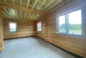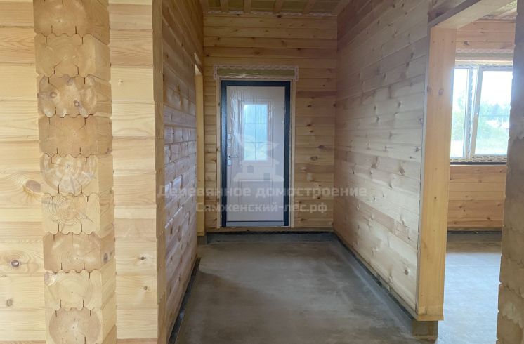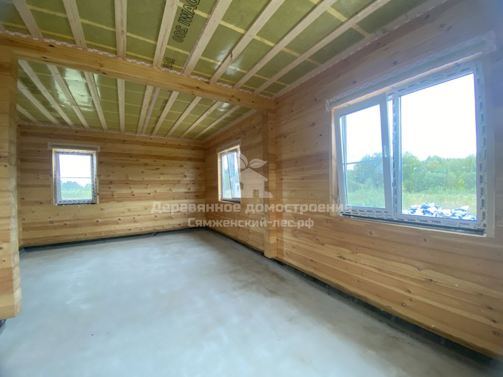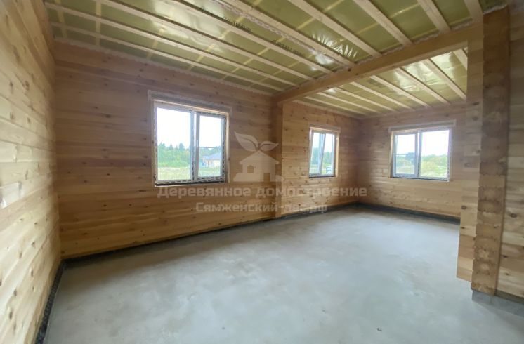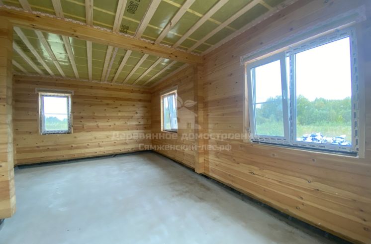 Дом возведён с использованием семейной ипотеки 6% от ВТБ и эскроу-счёта. Фундамент заказчик сделал самостоятельно: плита с дополнительной лентой под несущие стены, чтобы приподнять дом над землёй. Решение грамотное — оно защищает нижние венцы от влаги и продлевает срок службы дома.