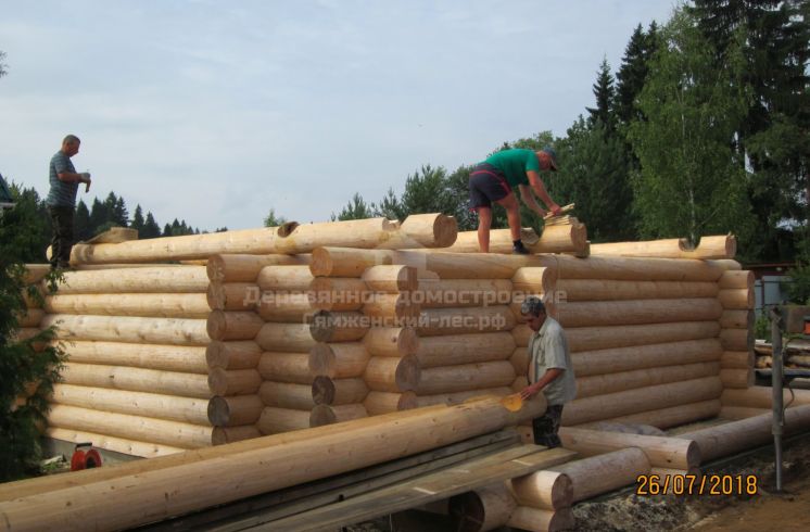 После чего сразу же началась рубка сруба. Ход рубки периодически показывался на сайте фирмы.
