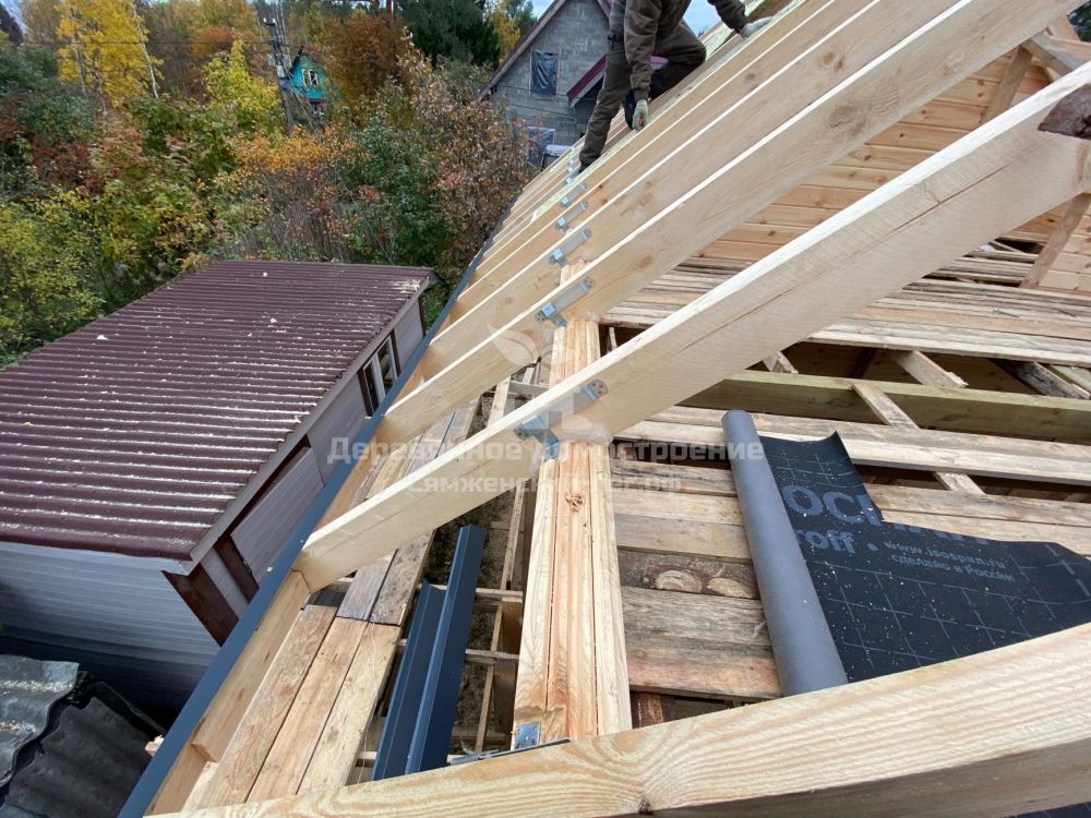 Участок находится в садовом товариществе, где подъездные пути очень узкие и большой технике сложно проехать. К счастью, водитель манипулятора оказался нашим земляком из Великого Устюга. Он сразу узнал нас по вологодскому говору) Благодаря его профессионализму, все материалы аккуратно завезли на участок, и бригада Артема Бешеля приступила к сборке.