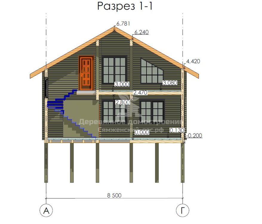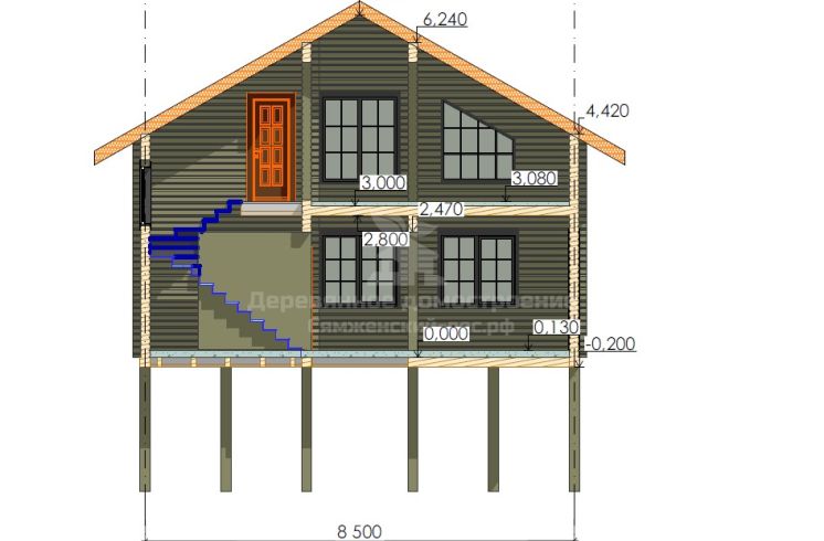 — Дом установлен на железобетонных сваях с обвязкой из бруса 200х200 мм