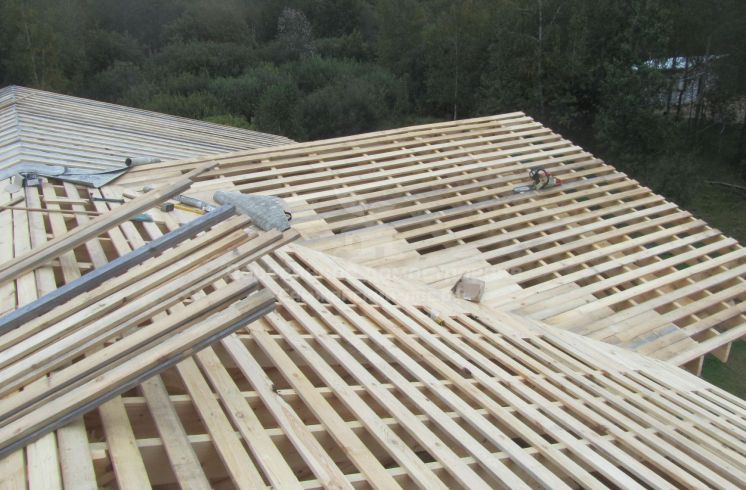 На изготовление ушло около 250 кубов леса. Если все детали выложить в один ряд, то получится прямая, протяженностью 3,5 км. Весь сруб и пиломатериал увезли на 7 машинах. Для сборки использовали сразу 2 манипулятора: Дмитрий Иванович Белоглазов на лесовозе подвозил и раскладывал материалы, а Иван Ганичев на кране – аккуратно поднимал бревна на сруб. Под первый венец смонтировали подкладочную доску, между бревнами проложили джут, крышу на время усадки покрыли рубероидом. Общая площадь кровли составила 352м2. Со слов бригадира Александра Дьякова – это самая большая и сложная крыша, которую монтировала его бригада.