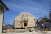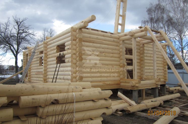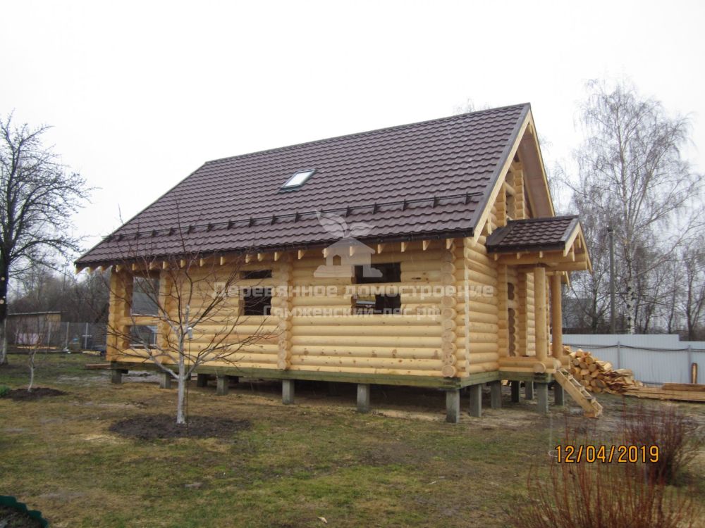 Анатолий и его дочь Мария( заказчики) обратились к нам в феврале 2019 года. Анатолий своими руками построил дом из профилированного бруса, а теперь решил на этом же участке построить дом для детей. У Анатолия большой строительный опыт, поэтому проект и смету согласовали быстро, 02 марта заключили договор. 25 марта мы доставили домокомплект на участок, бригада Дениса Будрина приступила к сборке.На сборку нам потребовалось 19 дней. Если бы не задержки с поставкой металлочерепицы, работу завершили бы раньше. Для изготовления 7-ми метрового конька использовали рубленное бревно, обработанное рубанком.