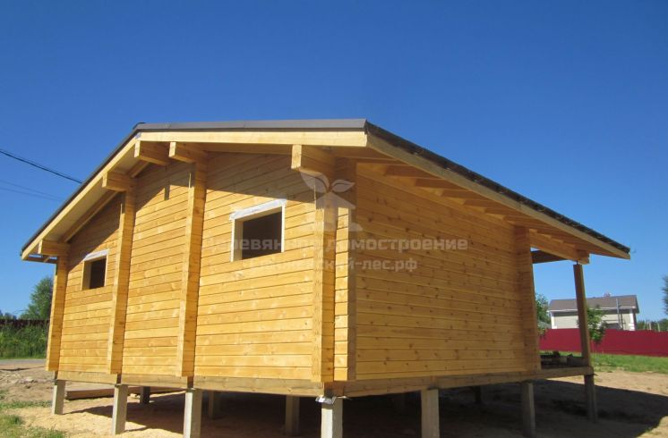 Построили дом по проекту "Вадим" из нашего нового каталога небольших домов. Общая площадь дома 42 м2. Для его изготовления использовали профилированный брус камерной сушки 140х140мм. Утеплили кровлю и полы, установили обсадные коробки на окна и двери, покрыли крышу мягкой черепицей. Изготовили домокомплект за 30 дней, собрали под крышу за 10 дней.