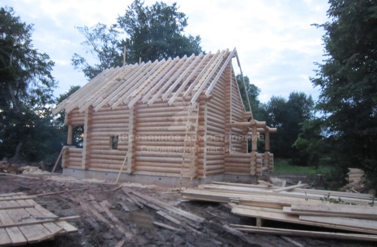 После чего сразу же началась рубка сруба. Ход рубки периодически показывался на сайте фирмы.