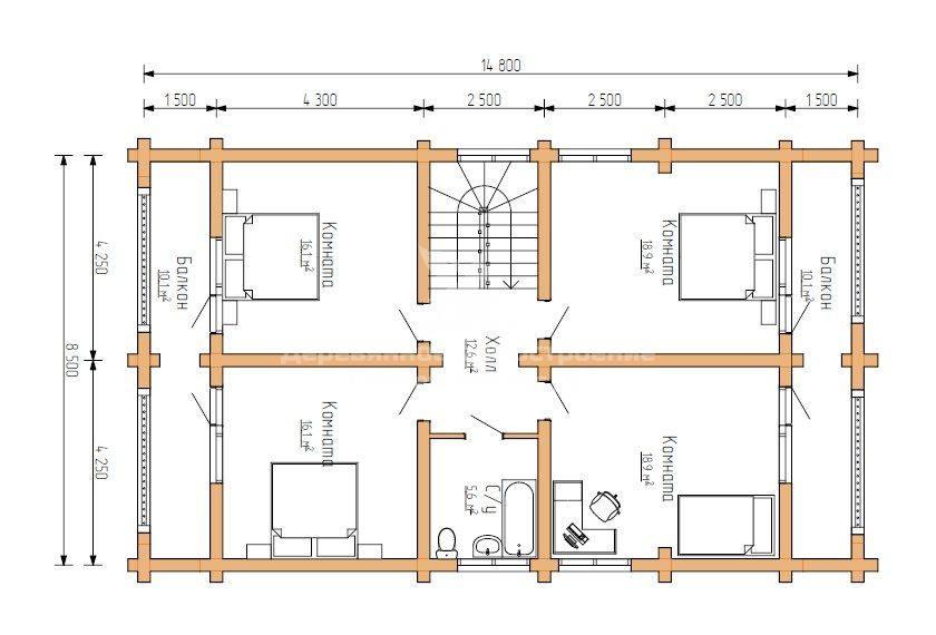 На основании наших эскизов компания разработала индивидуальный проект и построила дом в два этажа из профилированного бруса камерной сушки сечением 190мм х190мм.