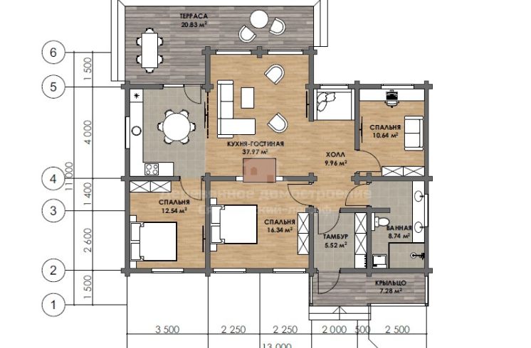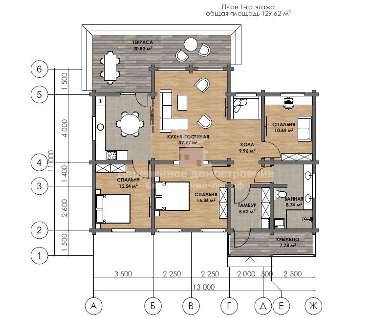 - Габариты: дом из клееного бруса 11х13